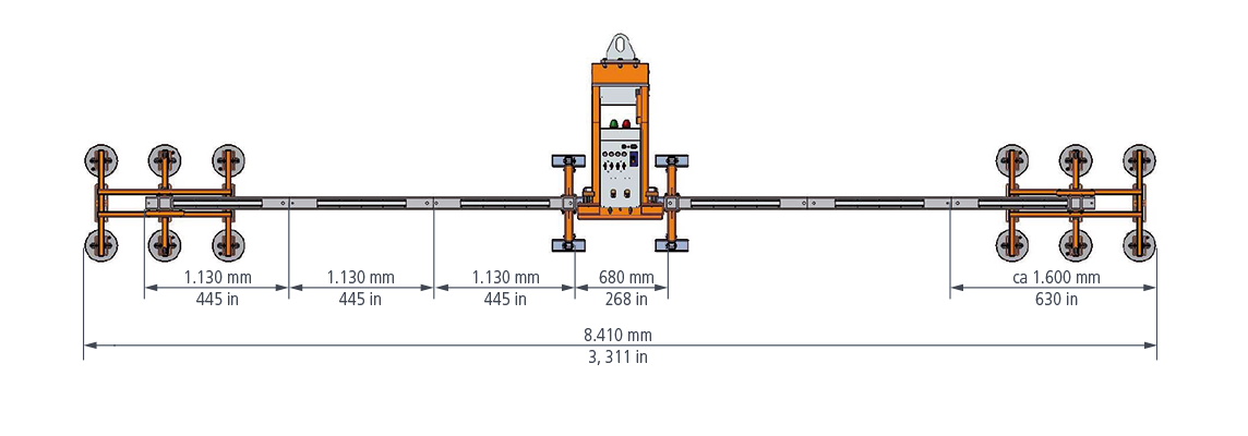 - 4 Doppelkammersauger (990 mm x 160 mm) für Dachelemente bis 400 kg