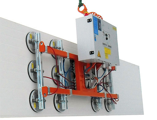 Durch die Verwendung der bewährten Wirth Rechteck- und Doppelkammersauger ist mit dem OKTOPUS ® PANEL-Jack GL-E der Transport und die Montage nahezu aller handelsüblichen Sandwichelemente und vieler Trapezblechprofile möglich.