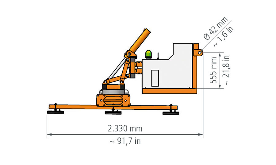 Das vakuumbasierte Lastaufnahmemittel OKTOPUS® IT-BT 850 ist für die Handhabung von großformatigen Bauelementen bis zu einem Gewicht von maximal 850 kg auf Baustellen konzipiert. Alle Funktionen werden mittels einer Fernbedienung gesteuert (optional Funkfernbedienung). Eine mit 24 V DC betriebene Vakuumpumpe erzeugt den notwendigen Unterdruck in den Saugern.