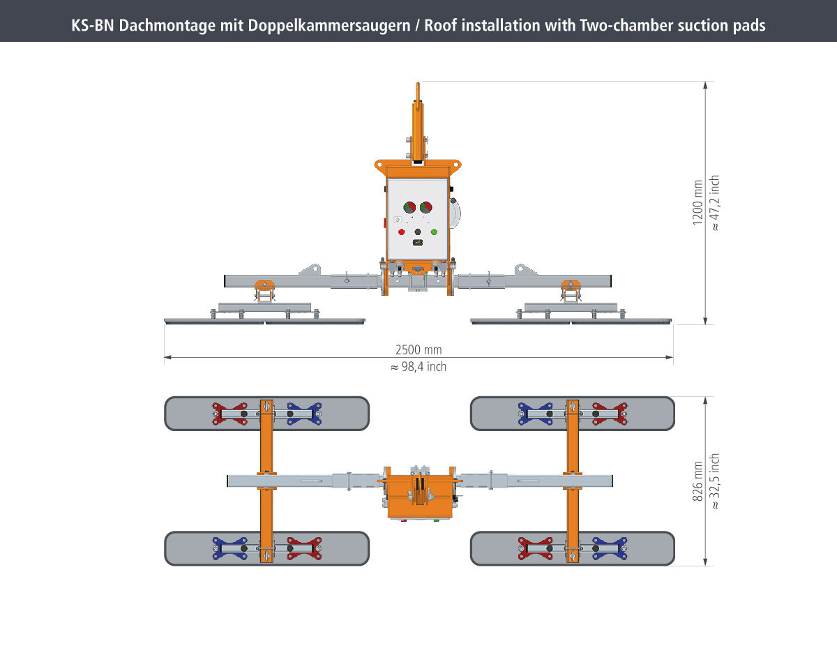 • 4 Double chamber suction cup (990 x 160 mm) up to 400 kg, Wall elements/roof elements