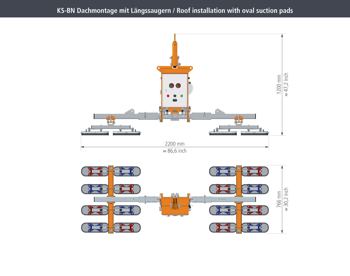 • 12 Rectangular suction cup (550 x 110 mm) up to 400 kg, Roof elements