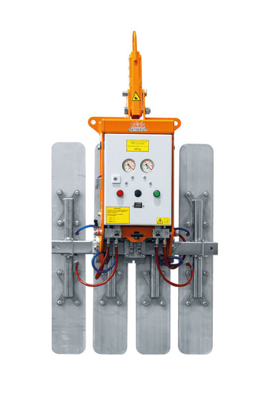 Der OKTOPUS® PANEL-Jack KS-BN ist ein vakuumbasiertes Lastaufnahmegerät für die horizontale und vertikale Verlegung von Wandelementen, sowie für die Verlegung von Dachelementen bis circa 18 m Länge (mit montierten Verlängerungen und Abspannelementen).