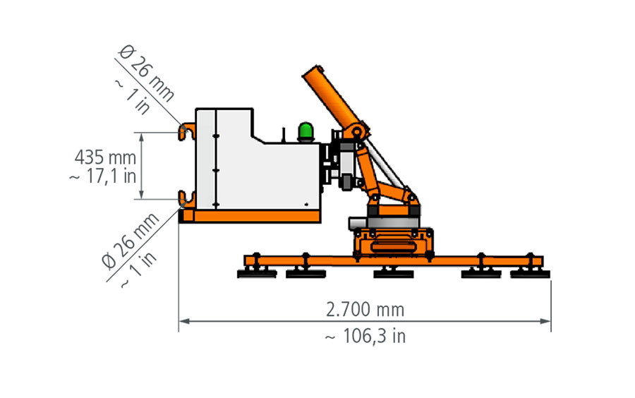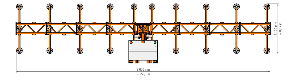Das vakuumbasierte Lastaufnahmemittel OKTOPUS® IT-BT 1000 ist für die Handhabung von großformatigen Bauelementen bis zu einem Gewicht von maximal 1000 kg auf Baustellen konzipiert. Alle Funktionen werden mittels einer Fernbedienung gesteuert (optional Funkfernbedienung). Eine mit 24 V DC betriebene Vakuumpumpe erzeugt den notwendigen Unterdruck in den Saugern.